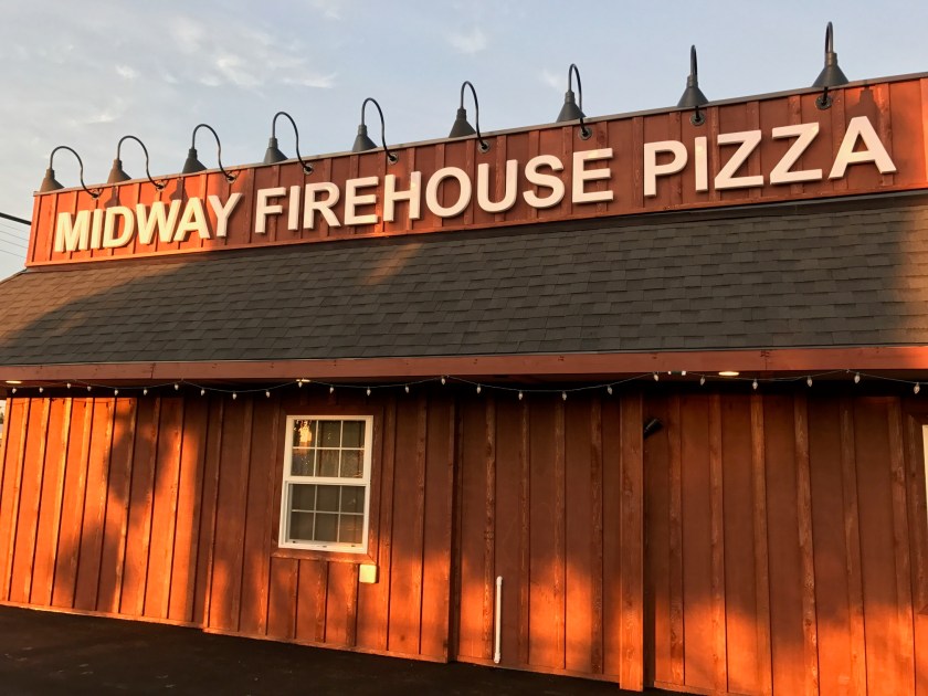 Things were pretty quiet on this warm Sunday night. A co-worker of mine (thanks K!) mentioned that a couple of relatives of hers worked at the Midway Firehouse Pizza and that being another place I’d driven by a zillion times I thought I should give it a try – plus pizza – Hello!!?? The parking lot and the rest of the building looked brand new, though I was certain sometime when I’d driven by it before it looked like it might need some help – good for the current owners for restoring and renovating it.