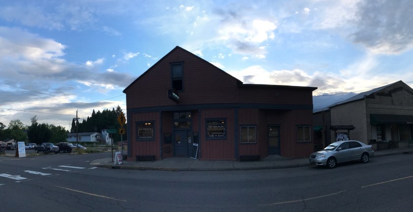 I decided on a whim to stop by and parked the 300 (I know, I know – why not the Bronco, well, I was on a long drive and wanted to make sure there wasn’t any issues with me 1) hitching a ride when/if it broke down 2) Spending $100 in gas or 3) realizing I vastly prefer it to the 300 – which I already know). It’s easy enough to find, it’s about a block south of the high school and the one blinking yellow light in town.  It’s pretty close to the Trask Mountain Outpost.  I parked across the street and admired the outside for a moment.  I like the sign and the the idea that the pizzas are fresh made.  The only day they are closed is Monday.