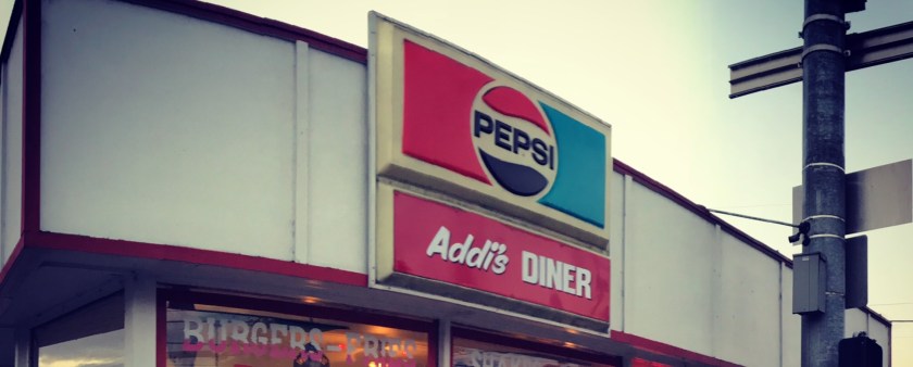 As I drove by I was able to easily spot Addi’s – there’s a fantastic old Pepsi sign with Addi’s Diner just below it.