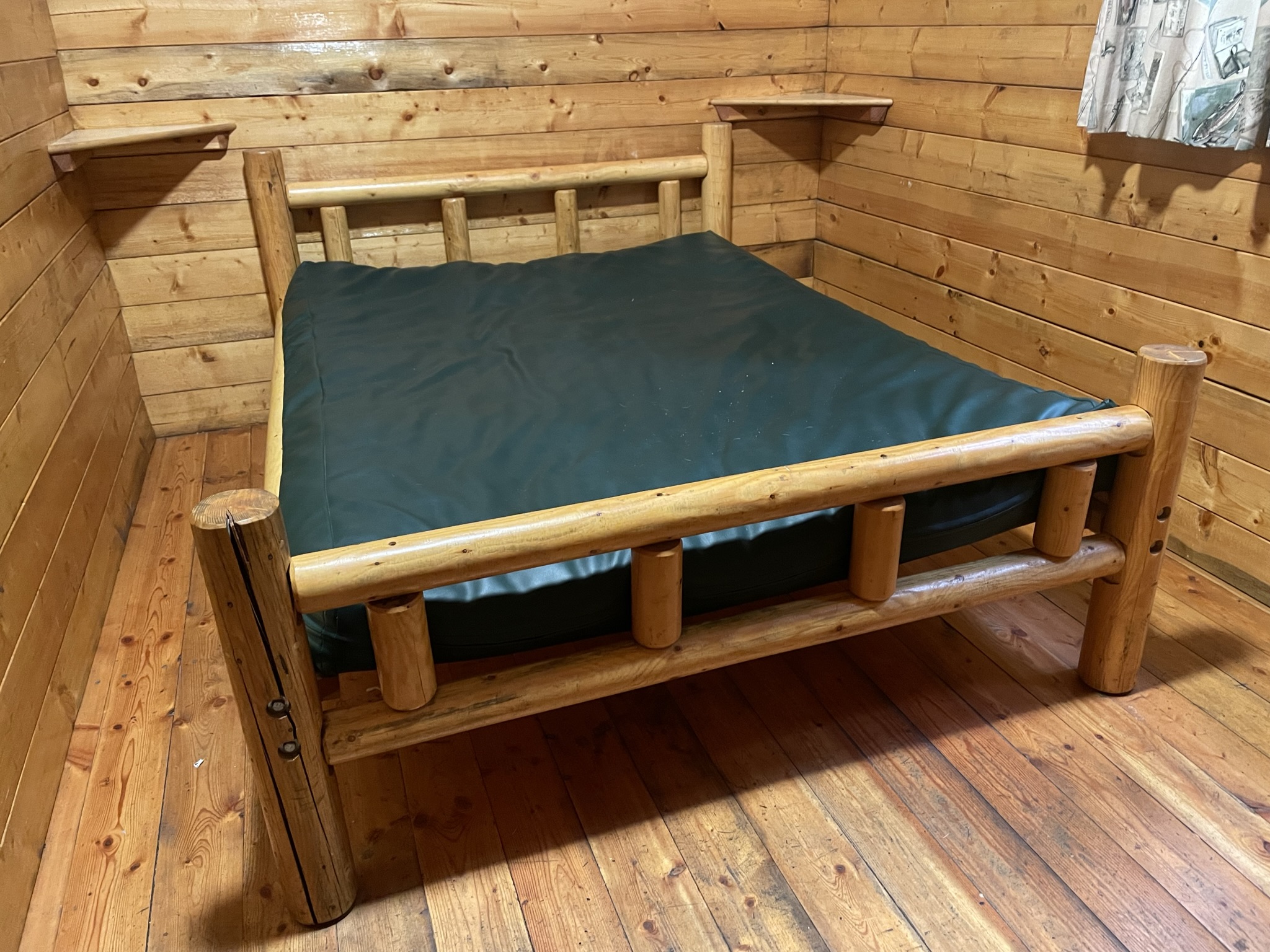 The first room inside cabin 1 was a smallish room that has a futon-type bed – that folds out flat if needed. There is also a small table, microwave, and heater. To the other side of the door to the next room there is a dining room-type larger table and a couple of wooden chairs.